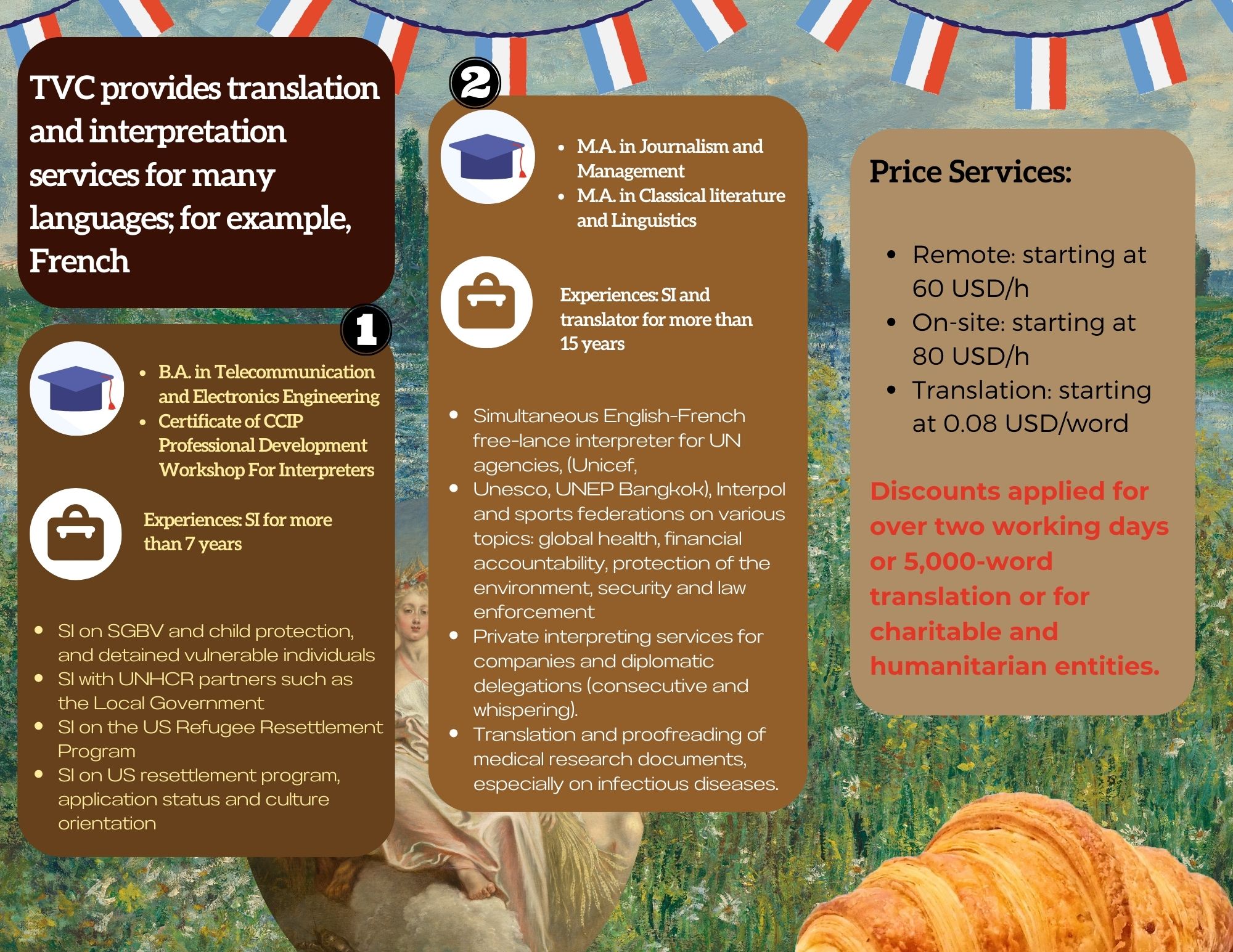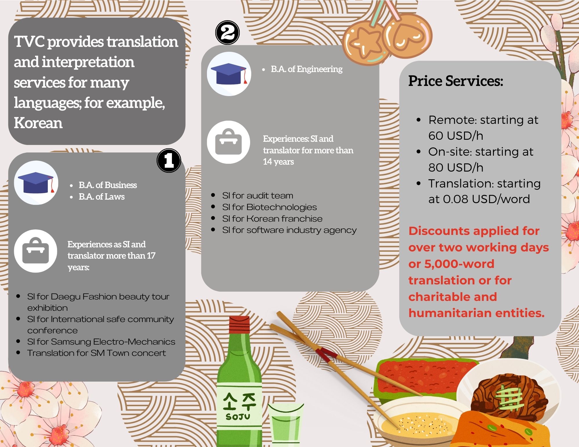 - Interpretation (further discount rates for > 16 hours and non-profit or charitable entities)