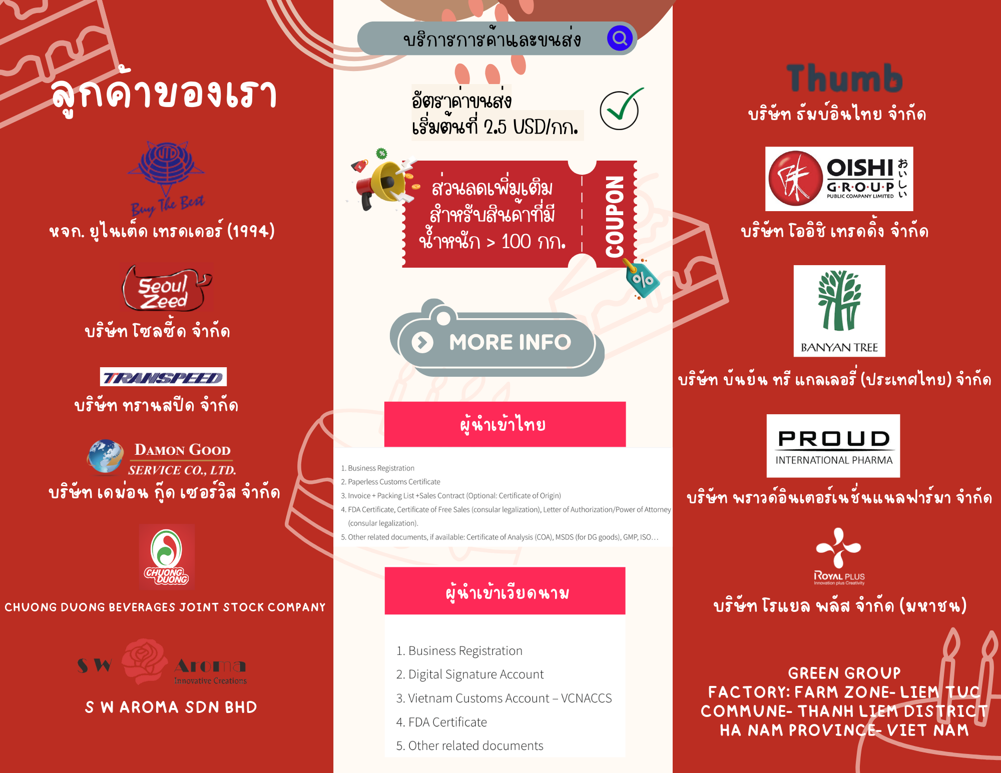 Our customers include international organizations, transnational businesses, institutions, and individuals in Thailand, Vietnam, and the Southeast Asian region: