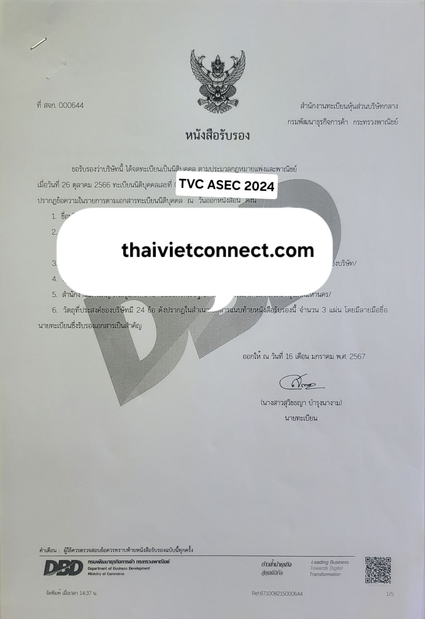 - DBD Certificate: Thai; English