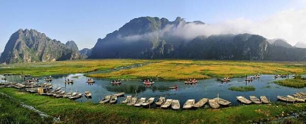 - Ninh Binh -นิงห์บิงห์: เปรียบเสมือนกรุงศรีอยุธยาแห่งเวียดนาม ซึ่งอยู่ทางตอนใต้ของเมืองหลวงปัจจุบันฮานอย: พระราชวังย่านโบราณ ล่องเรือเข้าไปชมวิวทิวทัศน์อันสวยงามของ Trang An ถ้ำในภูเขาพร้อมชมทิวทัศน์อันงดงามและบรรยากาศอันแสนสดชื่น