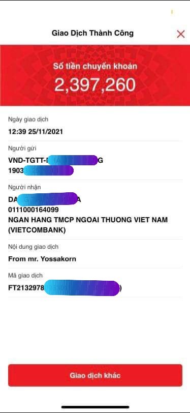 สามารถเดินทางโดยใช้การโอนเงินในไทย และรับเงินโดงเวียดนาม ในเวียดนามเป็นเงินสด หรือในบัตรชำระเงินสดในเวียดนาม