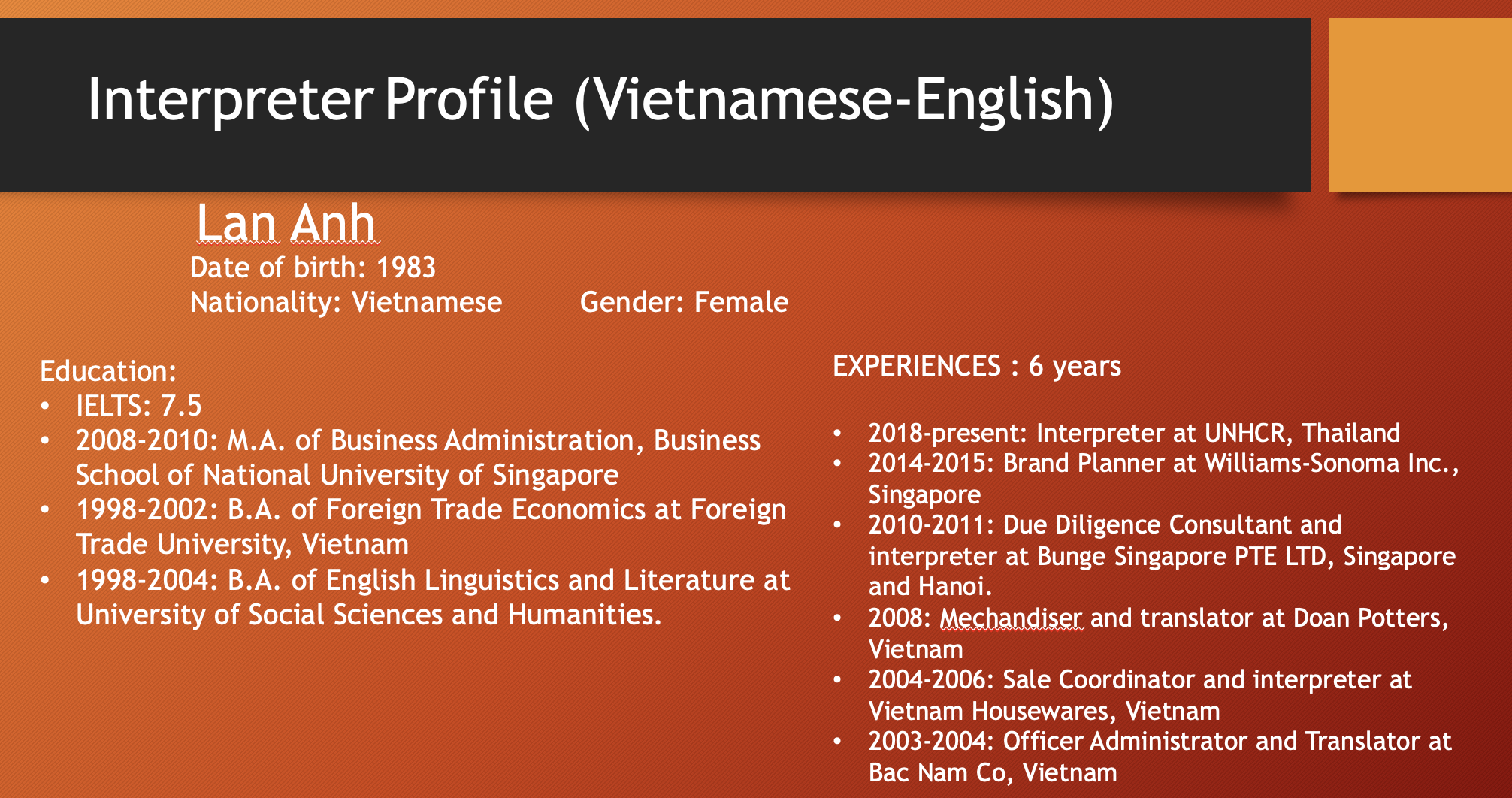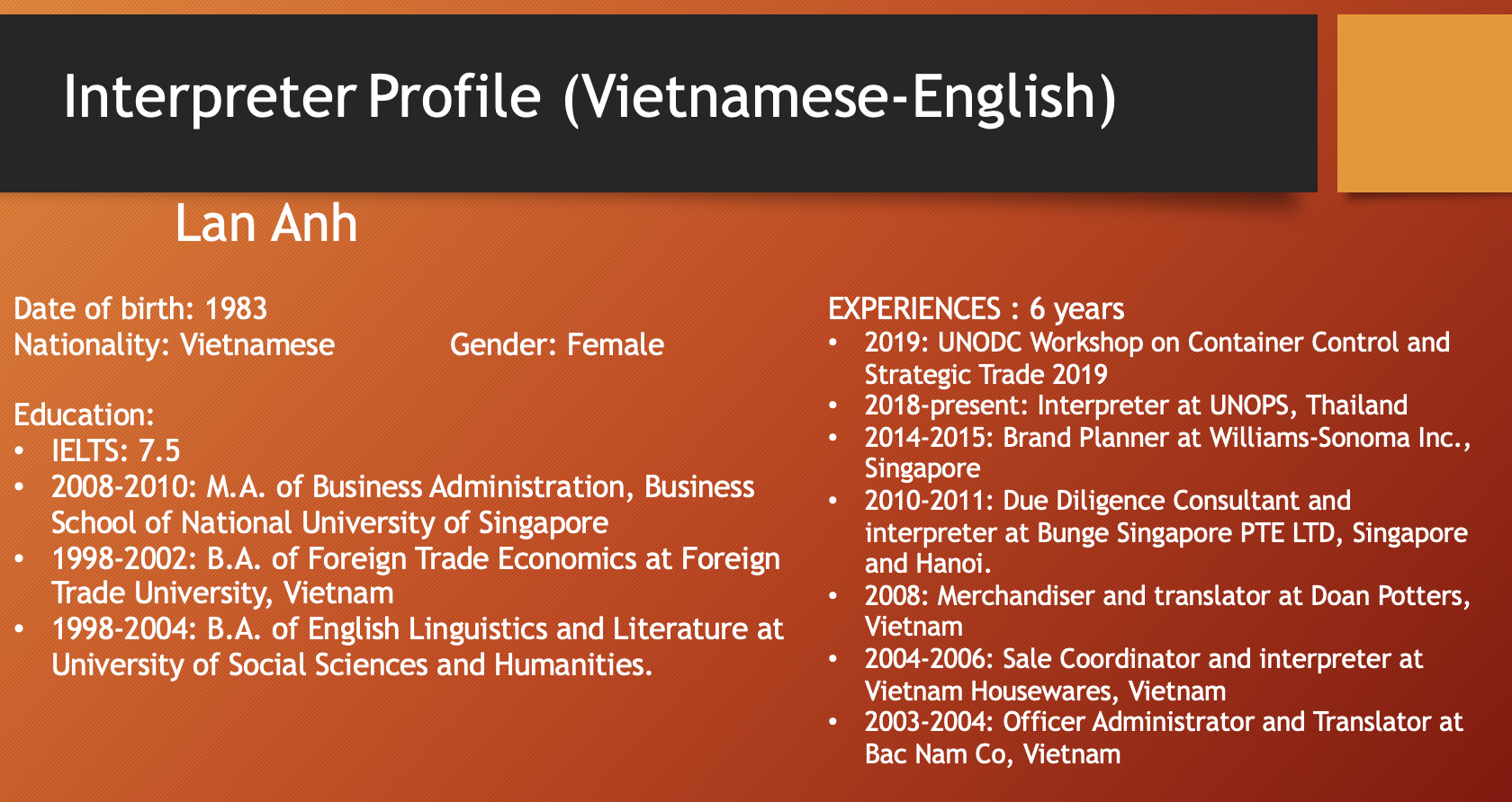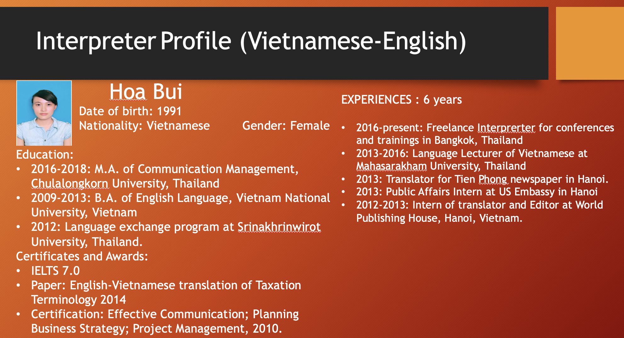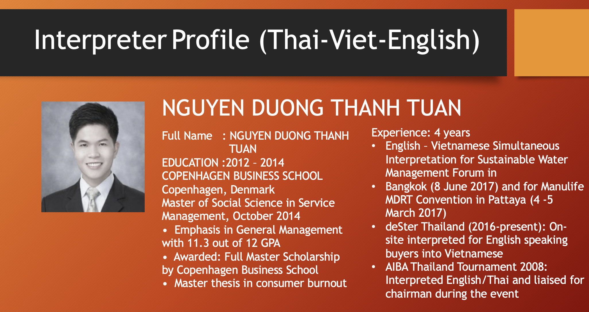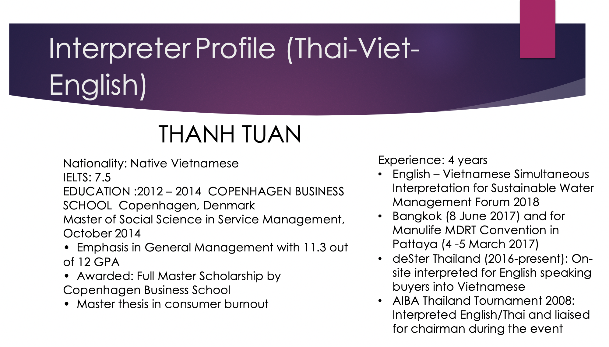 เอเชียคอนเนคต์ คอนซัลติ้ง แอนด์ เทรด (0805568001084) เป็นผู้ให้บริการภาษาในเวลายาวนาน พร้อมล่ามภาษาเป็นเจ้าของภาษาที่มีคุณภาพจากหลากหลายประเทศดังต่อไปนี้