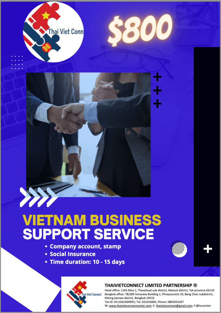 ไทยเวียตคอนเนคต์ขอแจ้งรายละเอียดค่าบริการดังนี้ หากมีข้อสงสัยใด ๆ เพิ่มเติมสามารถสอบะามได้ที่ Line official, thaiasia2023@gmail.com, Phone: +66803433247 (TH/EN/VN)