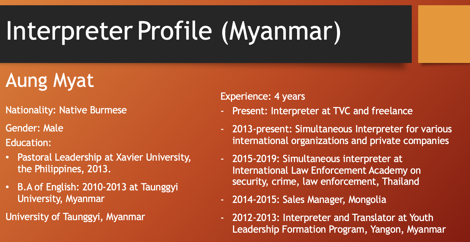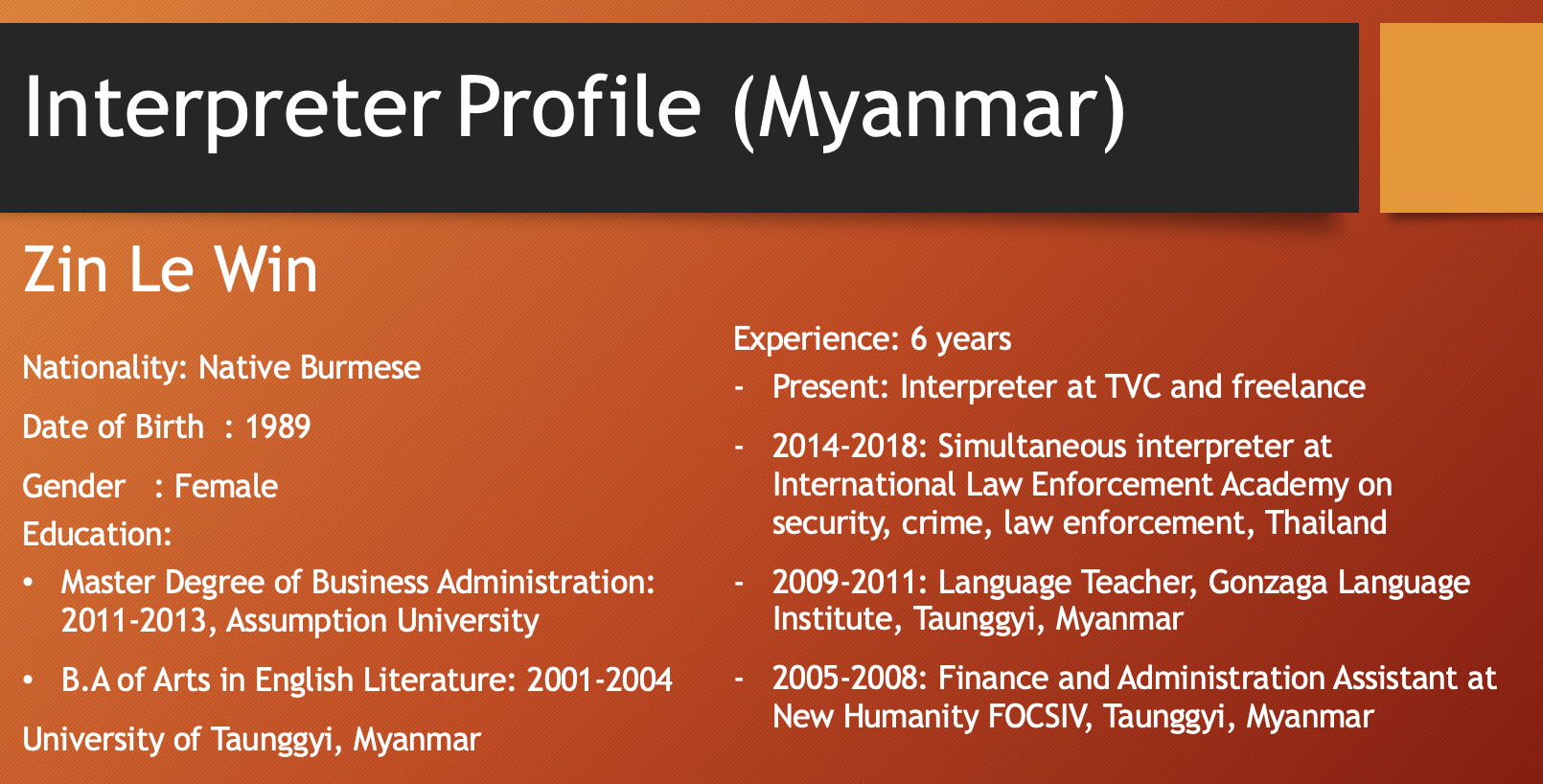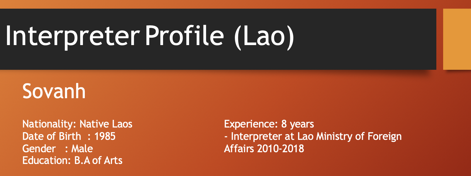 - บริการด้านภาษา และรับรองเอกสาร: บริการแปลเอกสาร และล่ามภาษาในรูปแบบต่าง ๆ พร้อมบริการรับรองการแปล รับรองกงสูล และสถานทูต สำหรับภาษาต่าง ๆ เช่น Thai, Vietnamese, Hmong-Jarai- Ede – Cham – Bana, Bahasa Indonesia, Malaysia, Jawi, Lao, Khmer, Burmese, Rohingya, Karen, Tagalog, Tetum, Chinese and Cantonese, Korean, Japanese, Korean, Spanish, Portuguese, Arabic, Urdu, Bengali, Tamil, Hindi, Pashto, Farsi, Russian, French, Somali…