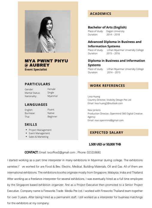 TVC เป็นสถานประกอบการที่ให้บริการที่ปรึกษากับต่างประเทศ นำเข้าส่งออก และบริการด้านภาษาให้แก่บริษัทและบุคคลทั่วไปมีความประสงค์ในการเปิดอัตรารับสมัครพนักงานประจําในตําแหน่งงานต่างๆเพื่อรองรับการขยายงานที่เพิ่มขึ้นในอนาคต ตําแหน่งงาน
