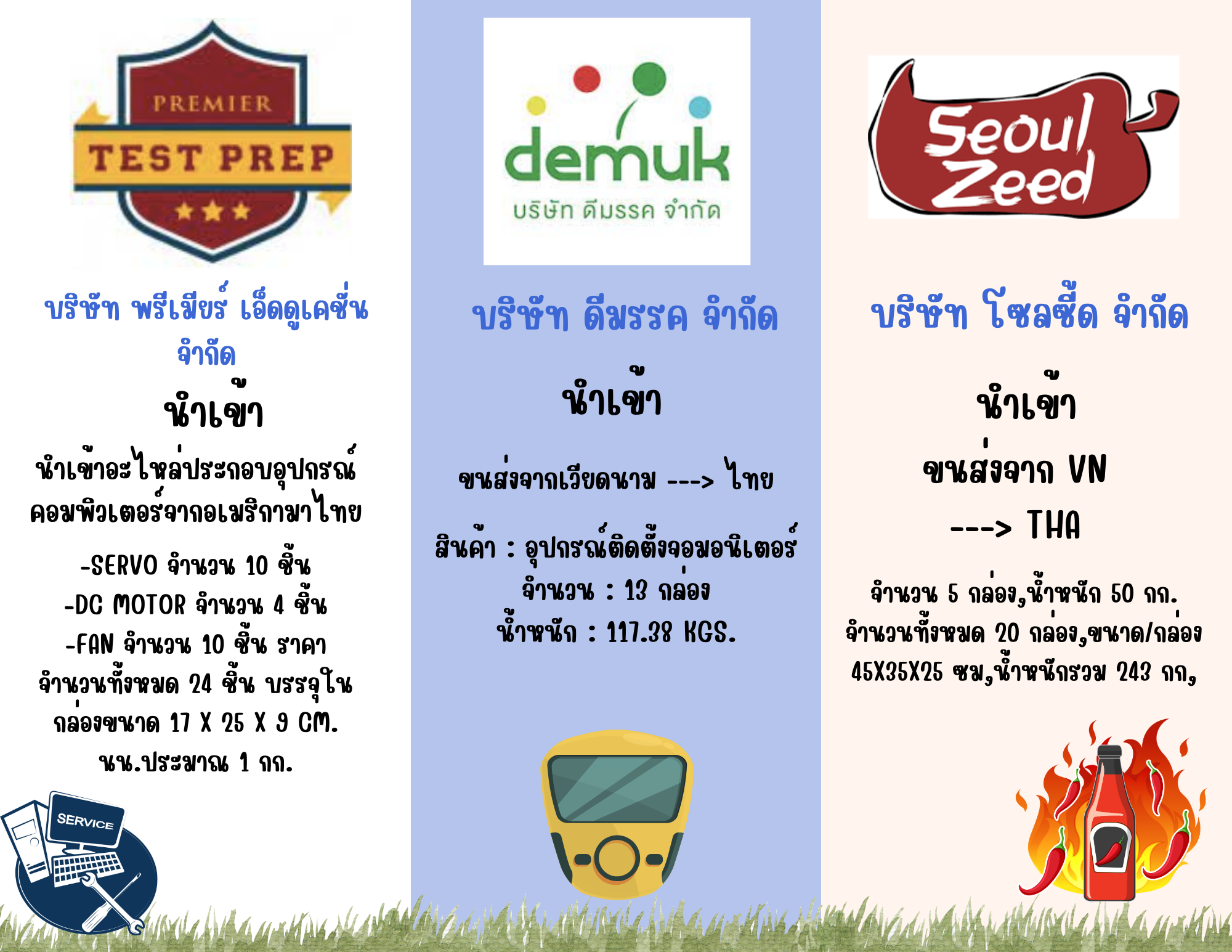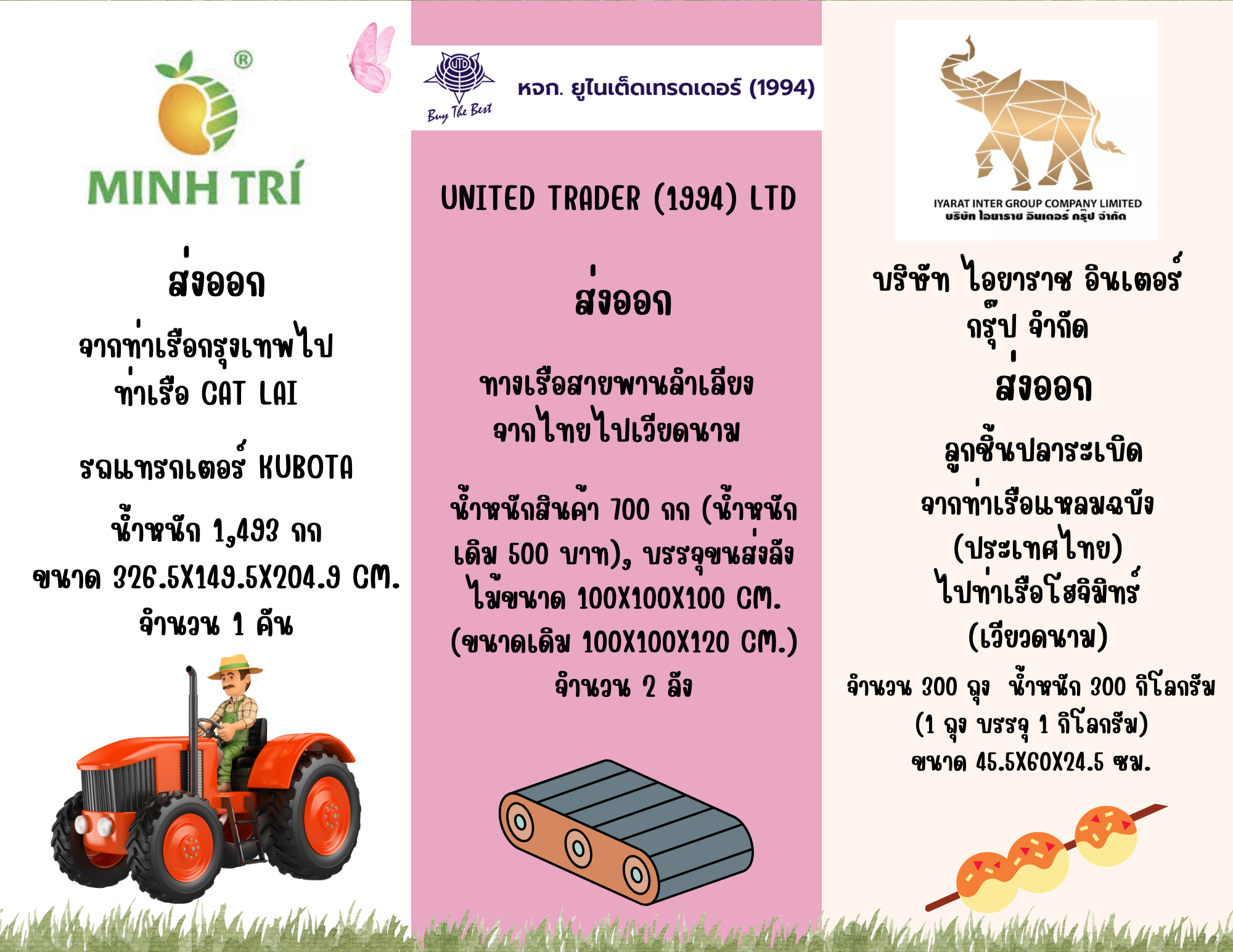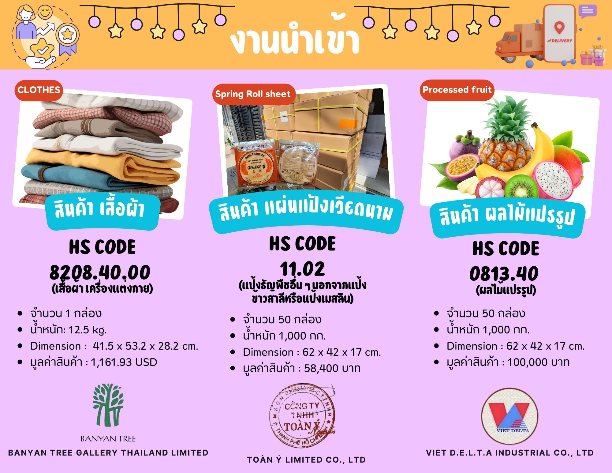 - บริการสำรวจตลาด ดำเนินการจัดหาและจัดส่งสินค้าเวียดนาม-ไทย และกลุ่มประเทศอาเซียน