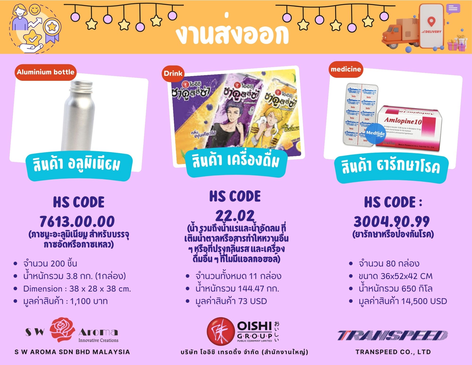- ระยะเวลาดำเนินการโดยประมาณ 1 – 2 วันสำหรับการขนส่งภายในประเทศ และ5-7 วัน สำหรับการขนส่งทางบก และทางเรือ 2-3 วันสำหรับการขนส่งทางอากาศ การขนส่งอาจจะมีผลกระทบจากการเปลี่ยนแปลงข้อกำหนดและมาตรการการควบคุมต่าง ๆ ของรัฐบาล