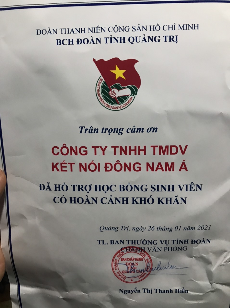 TVC and ASEAN CONNECT Co. Ltd. Vietnam, granted scholarships to students at Hue university and Quang Tri university for their achievements and mitigating flood impacts on their families in December 2020.