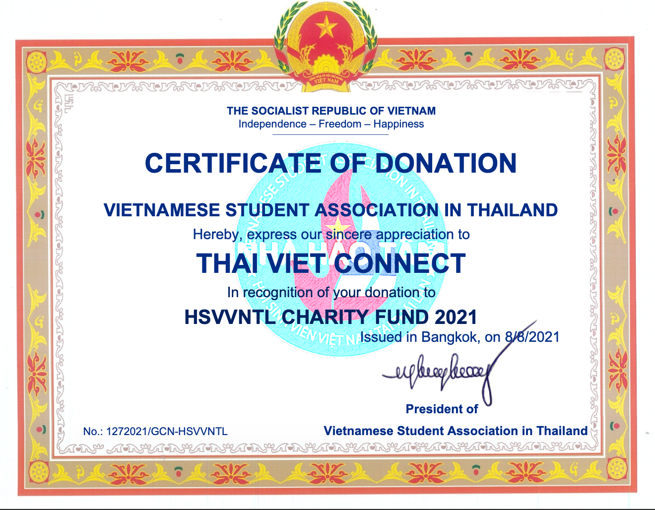 TVC (0805568001084) in cooperation with our local partners in Thailand, Vietnam, Cambodia, and Indonesia initiated the Thai Viet Connect Fund (TVC) and Ngo Thi Thom Fund (ASEC) jointly providing support to different local communities in Southeast Asia to realize our common social responsibilities for sustainable development, quality education, and social equality.