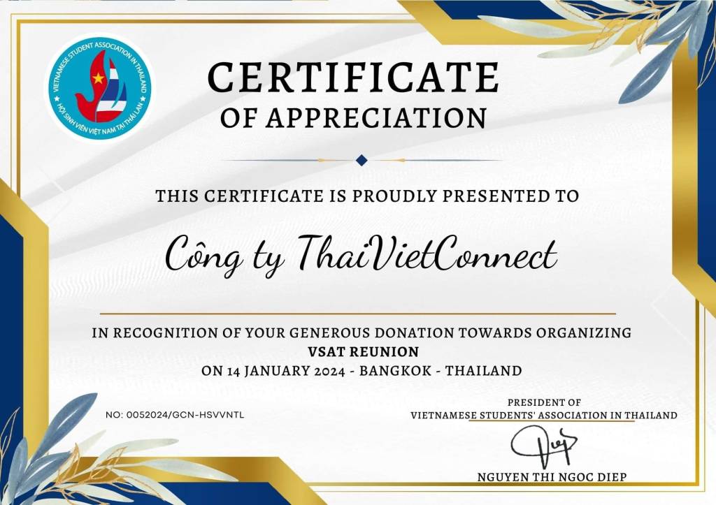 กองทุน CSR Ngo Thi Thom ของ TVC ได้มอบเงิน #สนับสนุน ให้แก่สมาคม #นักศึกษาเวียดนาม ในประเทศ #ไทย เพื่อส่งเสริมการศึกษา และกิจกรรมแลกเปลี่ยนของนักศึกษาเวียดนามในประเทศไทบเนื่องในโอกาศการประชุม VSAT REUNION January 2024