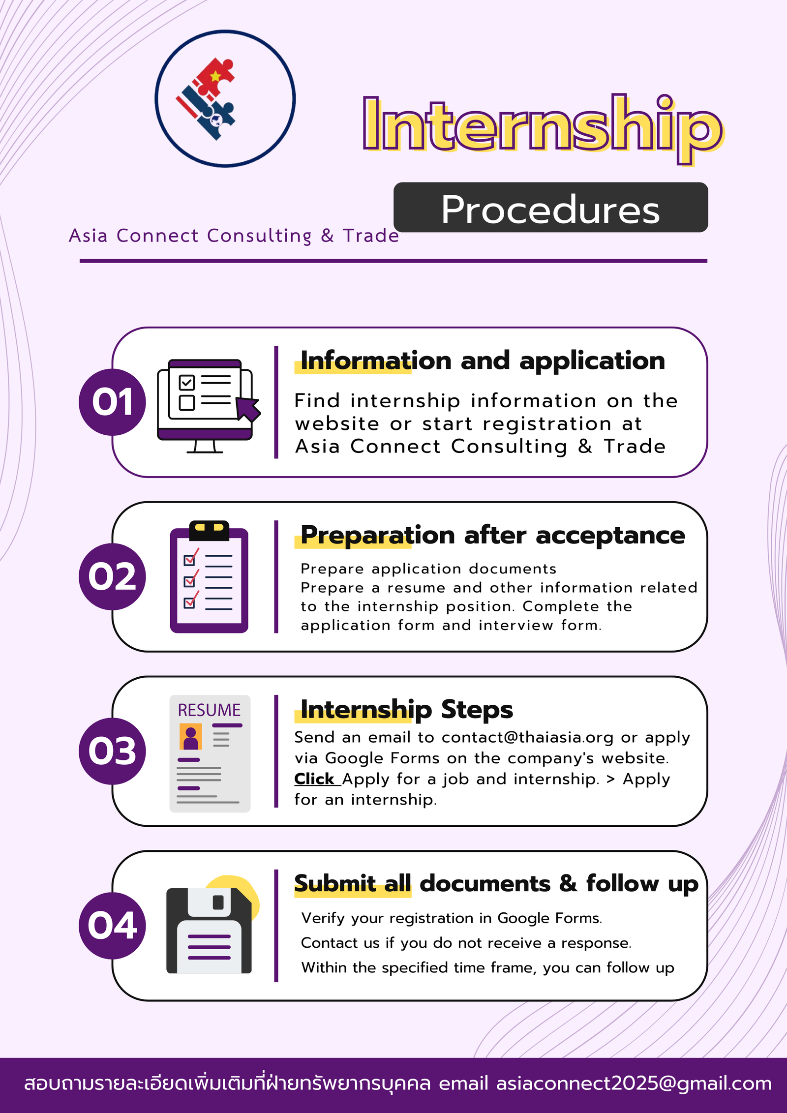 Asia ConnectAsia Connect Consulting and Trade, Thailand (Tax ID 0805568001084) TVC is recruiting more talents for full-time and part-time job opportunities in various positions to support our further expansion in the future.